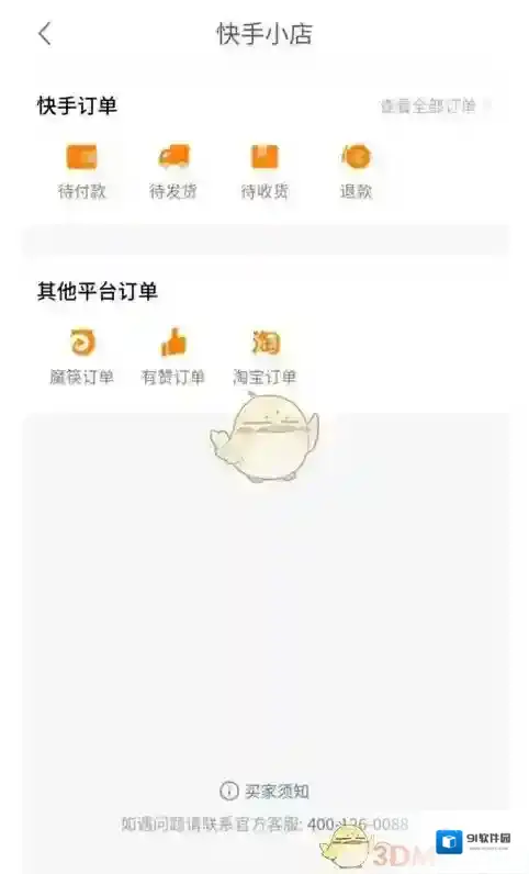 5、点开快手店铺订单,会进入到“快手小店”页面: