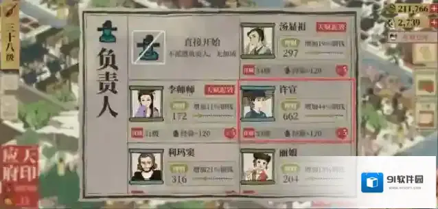 4.选择可以增加铜钱的负责人,增加铜钱产量。
