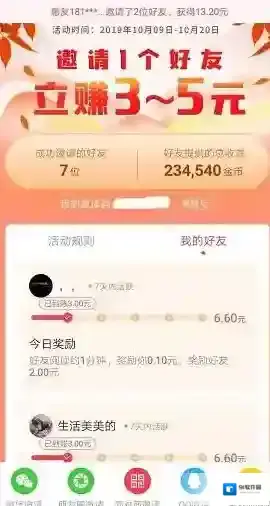4、 邀请好友赚钱,只要填写邀请码就有30000-50000金币到账,也就是3-5元。