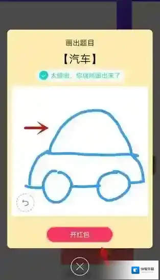 6、最后顶端画出一个大弧线,就可以识别出汽车,我们就画好了。