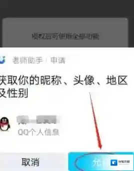 5、在老师助手申请获取qq个人信息页面,点击“允许”。