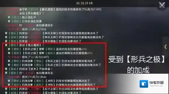 三、每个效果独立判定,例如刘备的战法,形兵之极为中军的增益只会触发在第一段效果上;