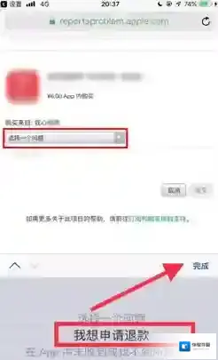 6、之后会自动跳转到官网的报告问题页面,点击选择一个问题-我想申请退款选项;