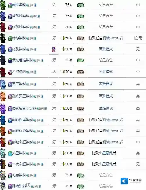 泰拉瑞亚染料在哪里获取?泰拉瑞亚全染料大全
