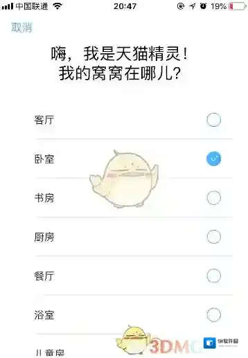 6、如果第六步密码正确,系统会进入初始化界面,选择设备所在的位置,“房间”或“客厅”等。选择设备实际所在位置,然后点击“下一步”。