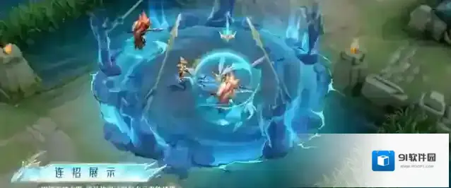5、大招落地后掀起海洋之力,技能范围周边出现代表战队五人齐心的石像;