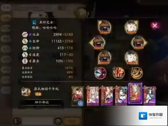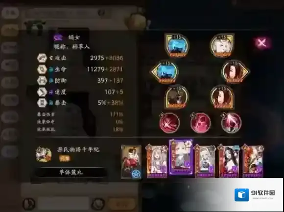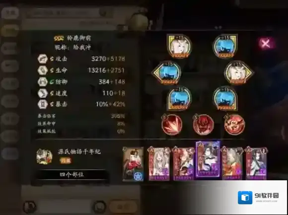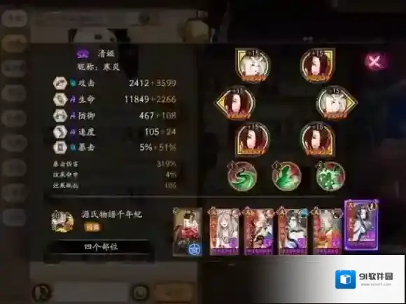 御魂:破势歌姬或者心眼歌姬铃鹿御前、爆伤清姬、心眼丑女、招财追月、招财缘结神
