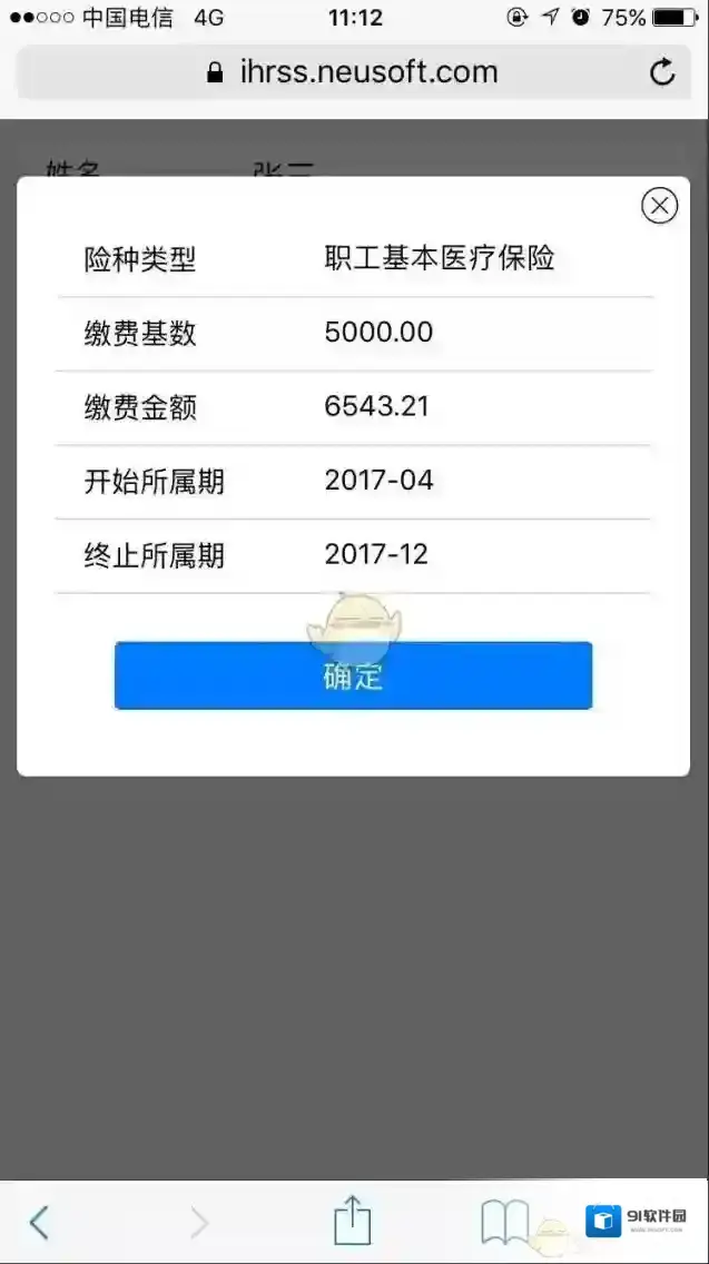 6、缴费基数、金额等信息确认后点击“确定”,如图: