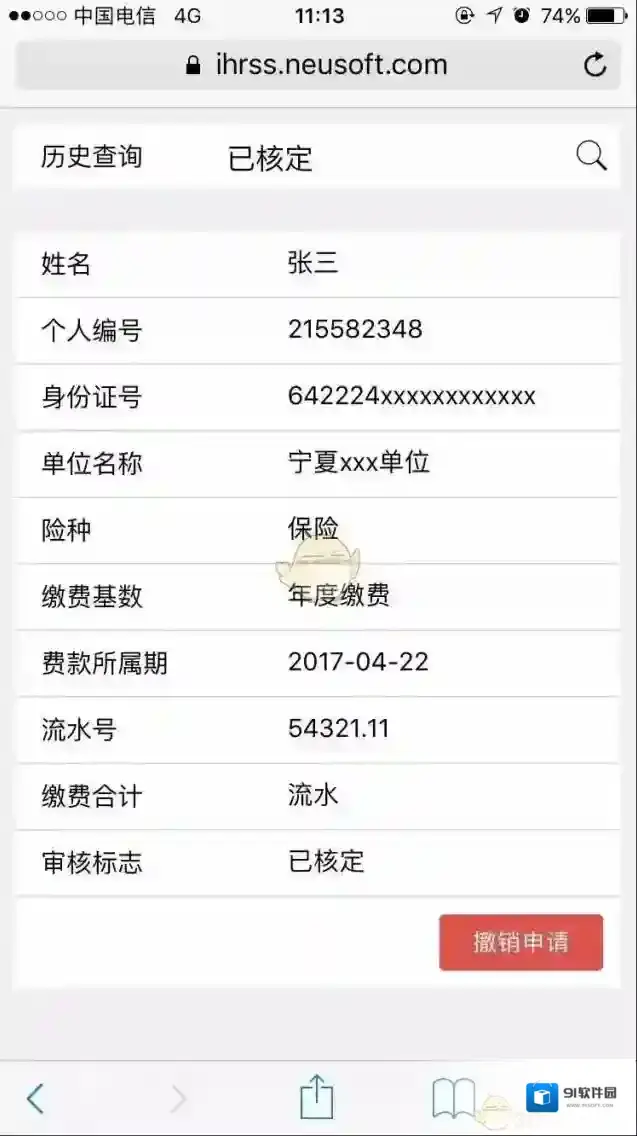 8、如不需要核定,可在历史查询中撤销申请,如图: