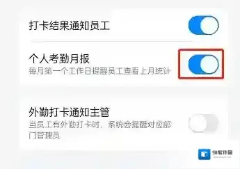 4、将个人考勤月报右侧开关关闭即可(如图所示)。