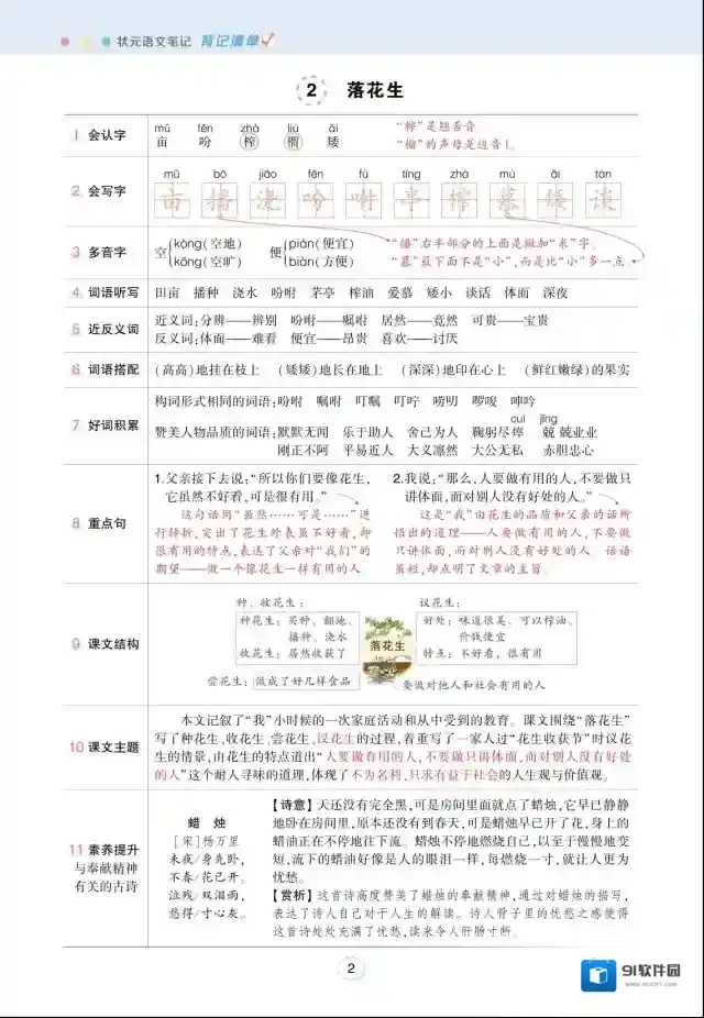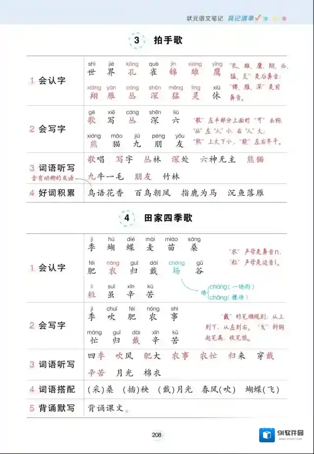 状元语文笔记(背记清单)2年级上册PDF百度云网盘
