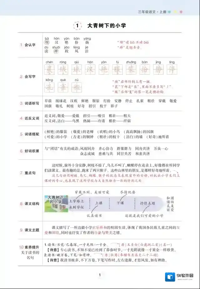 状元语文笔记(背记清单)3年级上册 pdf格式 百度云网盘