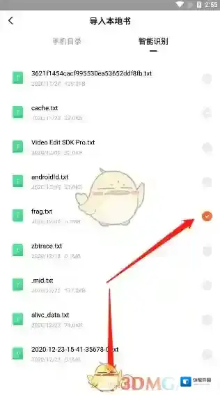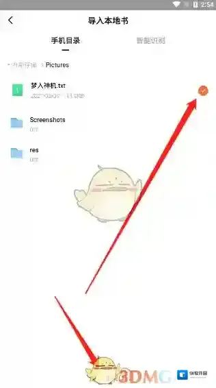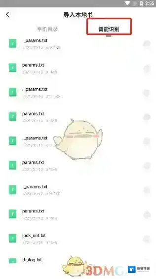 6、如果我们不知道手机中的小说存储位置,我们在上方找到“智能识别”,然后系统就筛选出TXT文件,在这里就能够轻松的找到我们存储在手机中的小说。