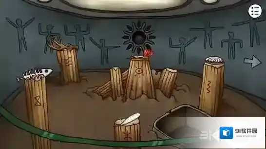 到现在的沙滩上以后发现有古藤长出来,登上古藤来到图示地点,将实验室里外星人房间图案点到门上,火箭门打开。(每个人图案不同)