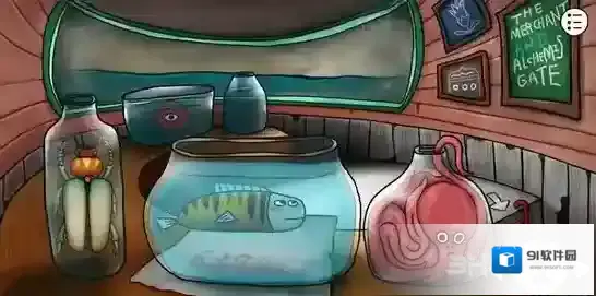 点击房间尽头的拼图块,将得到的拼图块放进去,将图案拼好得到绿色药水。
