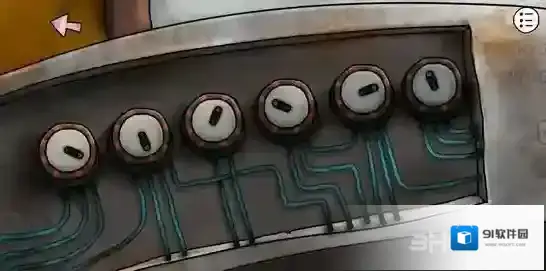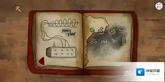 然后点开左边的收音机一样的东西,将时间石块放进去,并根据我画的图和书本最后一页的密码对应起来,把收音机上的蓝点点亮,时光机器打开。
