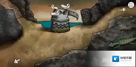 然后先点击三只鸟,等到鸟落到下方的石头上在点击蜥蜴,得到白色羽毛。