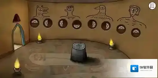 进去以后点击石像左下角,把在刚开始画布上记录的九宫格还原到石板上,得到图示。