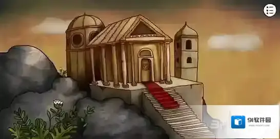点击左边的楼梯到达如图所示的神殿处,点门以后将漂流瓶中的图案还原,门打开。