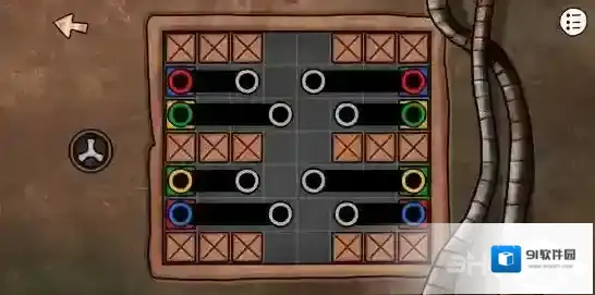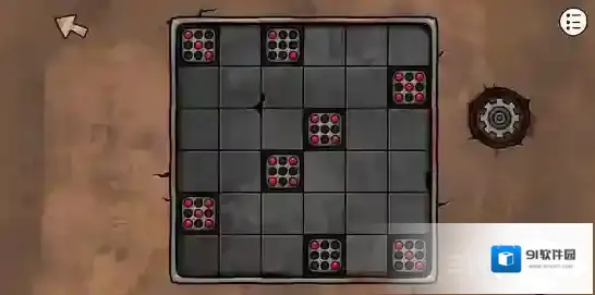 点击最左边闪红灯的门,每个方块里的红点数代表每个方块能够延伸出来的线条的数目(线条无法拐弯),将所有空格填满过关。