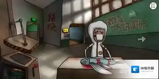 进入右边实验室深处,和实验室工作人员交谈得知左边机器坏了;他需要飞鱼研究。