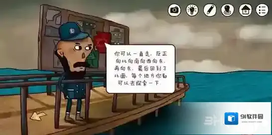 进入码头,和站着的人对话得到灯塔密码(北南西东东北)并得知只有灯塔打开船才会来。
