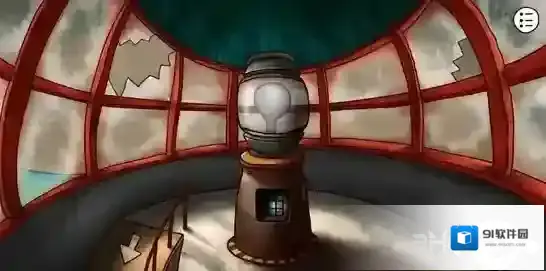 到灯塔一楼将异形钥匙插到右边有三角空洞的木板上,关掉电闸。然后到二楼右边接三根电线处里面拿到摇柄。