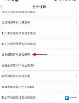 5、进入城乡居民养老保险缴费,点击下方的城乡居民养老保险缴费