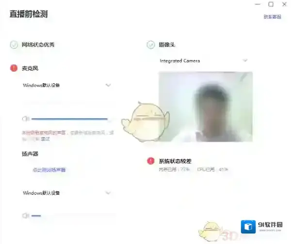 6、直播前的测试,测试自己的麦克风,扬声器和摄像头。