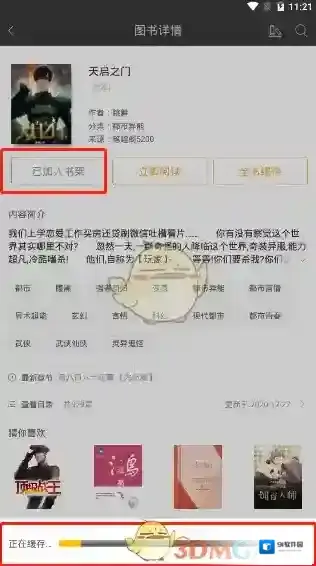 5、系统这时候就会开始缓存小说,同时该本小说也是加入到了我们的书架中。