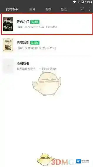 6、该本小说缓存完毕后,我们在回到软件中“我的书架”中,在这里就能够看见小说书名后有着绿色的“已缓存”。