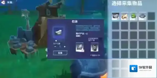 采石机消耗煤块可以生产石块,板岩,砂岩,大理石四种石头,每次生产需要两个煤块。