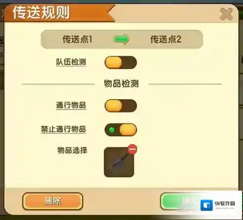 我们还可以设置禁止通行物品,玩家可以设置一种禁止携带通过的物品,有点类似安检门。