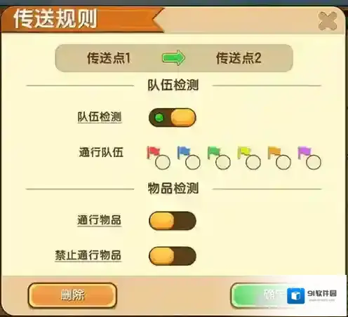 首先我们可以设置通行队伍,不是所选的通行队伍无法使用传送门。