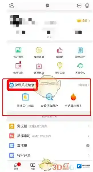 4、然后我们就可以看到功能卡片中添加了关注检测,在此直接点击就能进行个人信息的检测了。