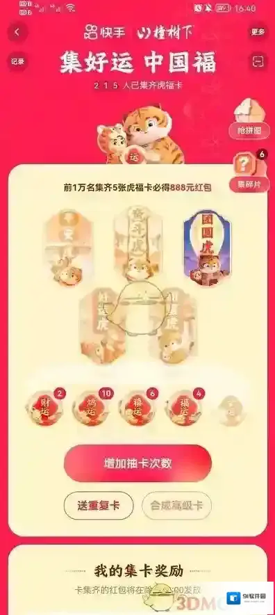 虎卡是需要基础的福卡及其后合成才能获得的,所以需要用户去做大量的任务才能获得抽奖机会,然后去合成福卡,就会获得虎卡,但是会出现各种重复的虎卡,所以需要做大量的任务;