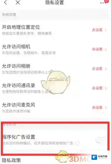 4、在最下方可以看到程序化个性广告设置,点击关闭按钮。