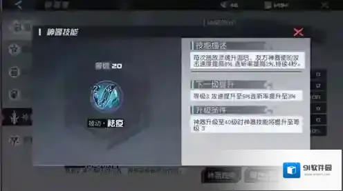 神器升级至20级时神器技能将提升至等级2。