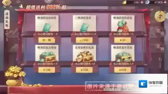 活动期间,限时上线唤魂特惠礼包,超值返利900%起!