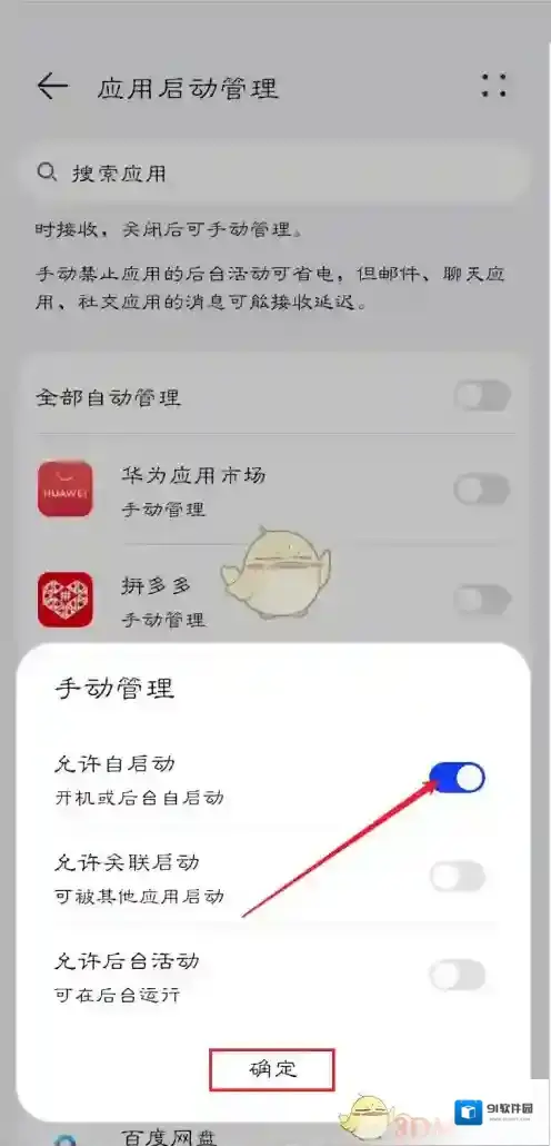 5、最后点击允许自启动即可。