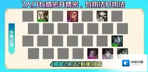 12.中期阵容:7人口开出4精密2执法2狙神1宿命羁绊,4精密能够增加高额的攻速,搭配女警的平A能够打出不错的单体伤害。其次精密里面的基兰和发条两大控制能够弥补阵容缺少控制这一致命缺点。7人口只要找到核心体系卡牌就可以直接拉8人口找杰斯开4执法。
