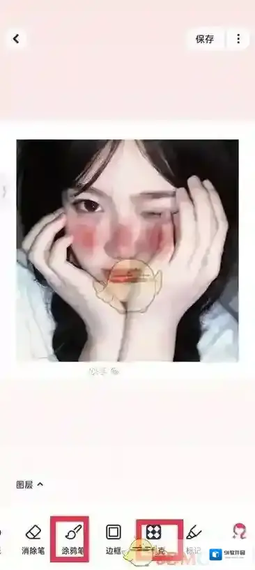 3、在功能区滑动找到涂鸦笔和马赛克工具中都有橡皮擦,主要作用就是修改涂鸦笔使用时多涂出去的地方或者是马赛克使用时多涂出去的地方。