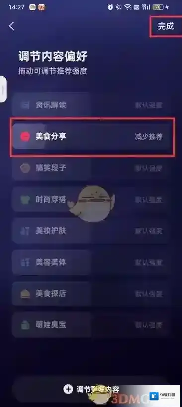 3、进入到内容偏好的页面中点击一个你要设置的爱看类型;
