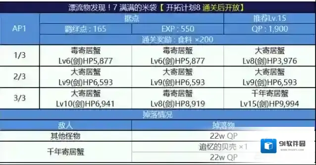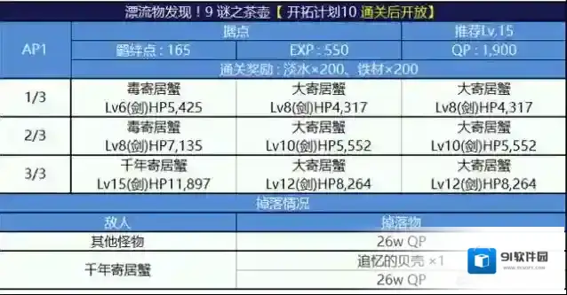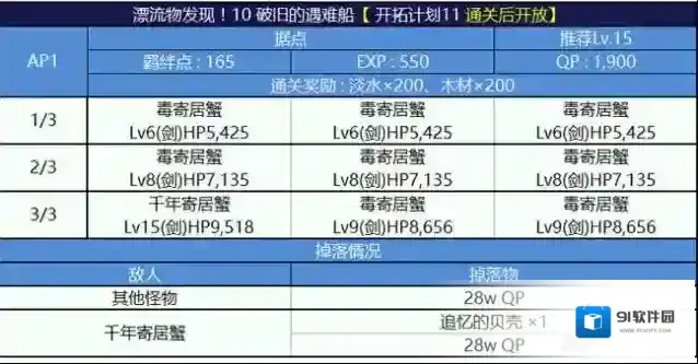 FGO泳装一期复刻1AP副本配置介绍 漂流物副本掉落介绍