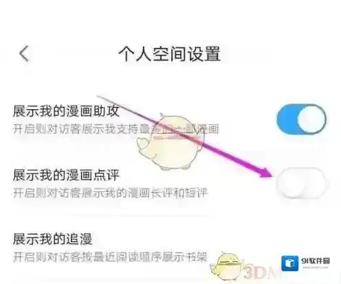 4、找到展示我的漫画点评,关闭右侧开关即可。