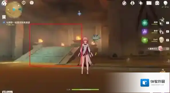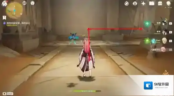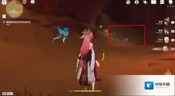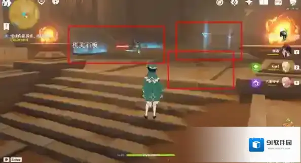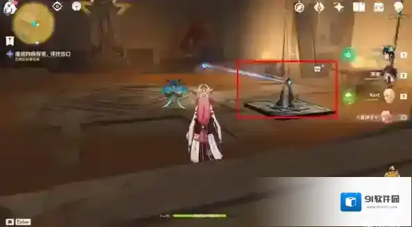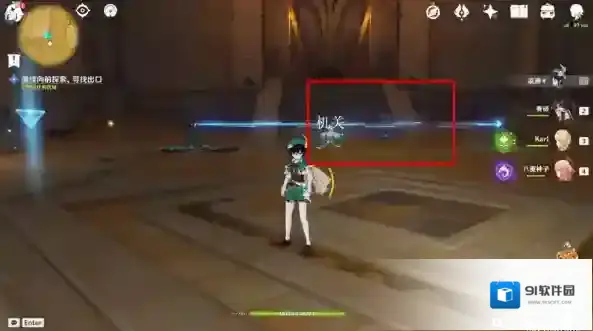 9 到达一扇门前,这时候会看到机关被土掩埋了,需要用风元素角色驱散沙子,即可解锁机关