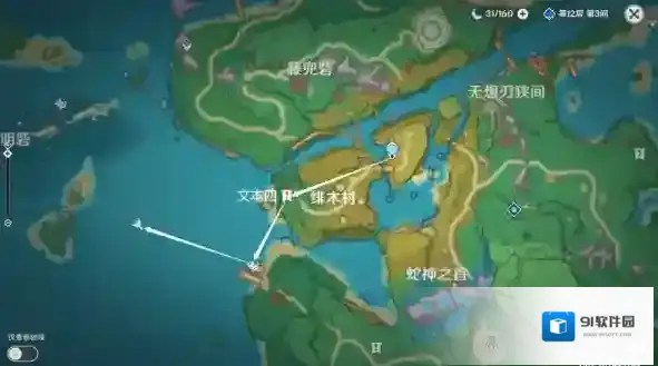 传送藤兜砦左侧锚点,往指引地图的北方向飞