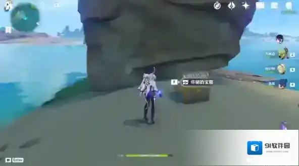开船到指引位置的小岛上,绕着小岛走一圈,获得宝箱一,在崖壁上找到第五本遗落的文本