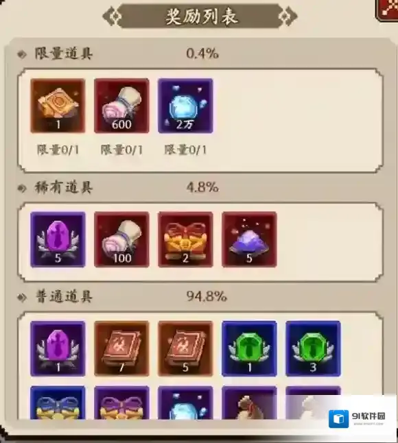 2、物品分析:限量道具中规中矩,20抽给的网和金币都十分到位。