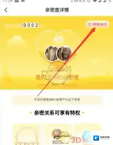 5、点击了特别关注以后我们可以看到如图所示,亲密度达到99之后就可以特别关注了。